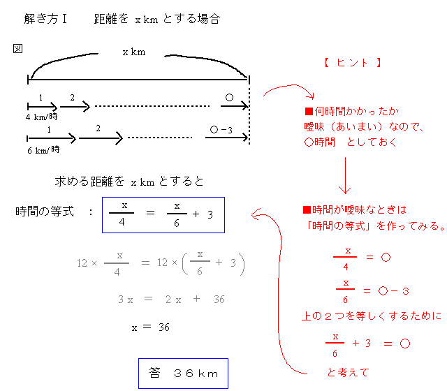 といったところです。 (2,3日に分けてやっても構いません。) さあ私を信じてやってみますか? それとも「めんどうくさそうだからまた今度・・・」にしておきますか? 「また今度」でもいいですが、それではいつまでたっても「速さの問題」を解けるようにはなりませんよ。