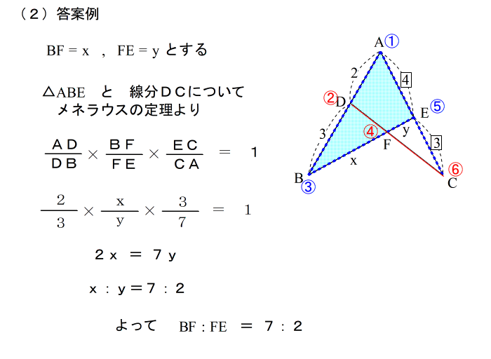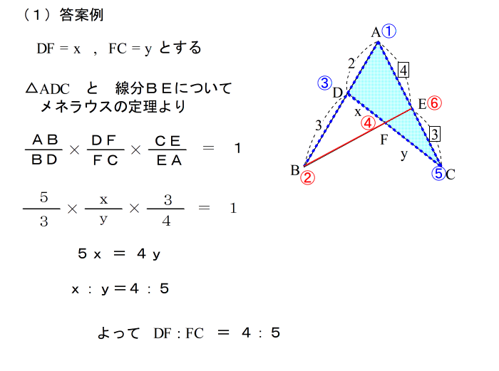 解答 【問1】 (1) DF : FC = 4:5 (2) BF : FE = 7:2 |